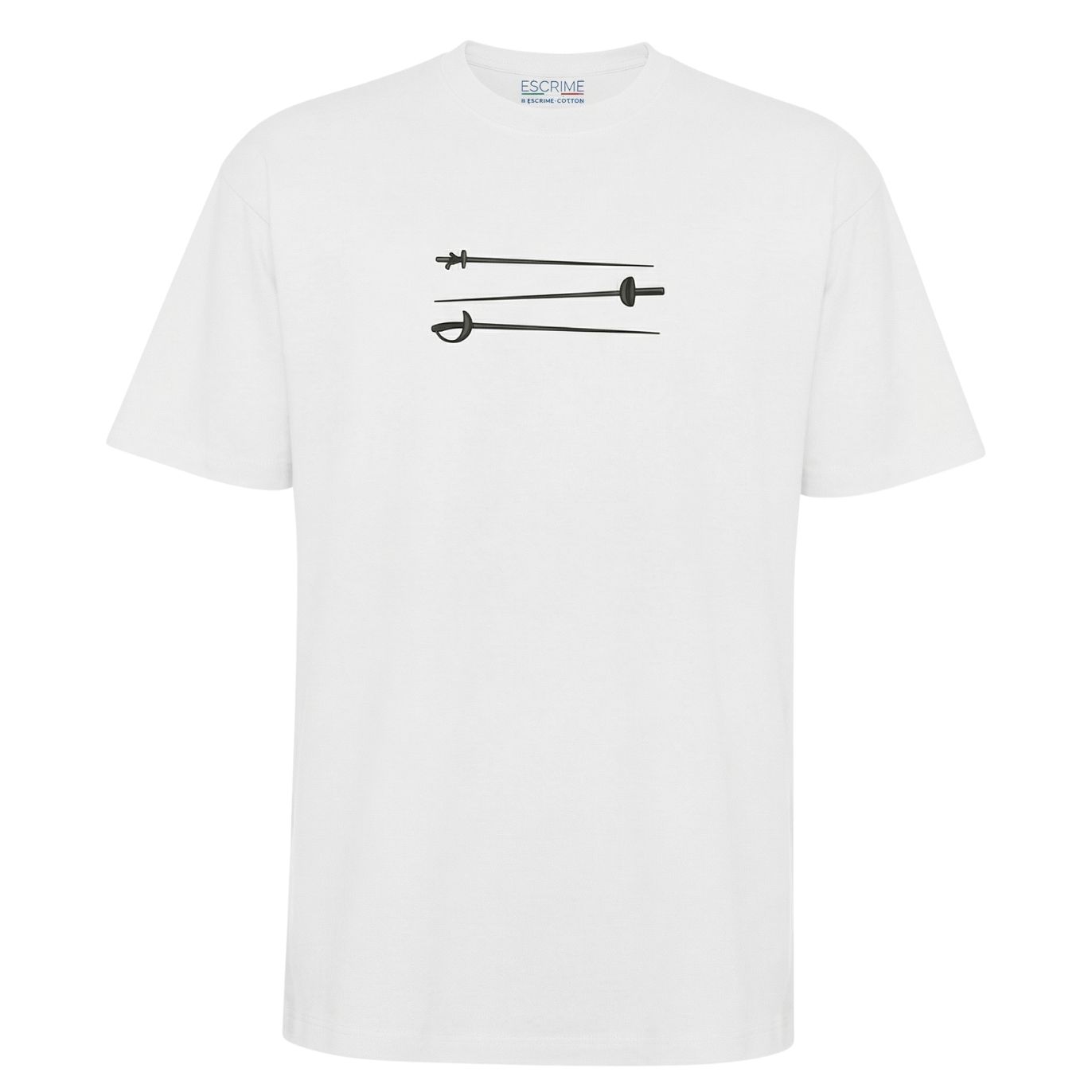 Ce t-shirt blanc adopte un style épuré avec un visuel discret des armes d’escrime sur la poitrine.