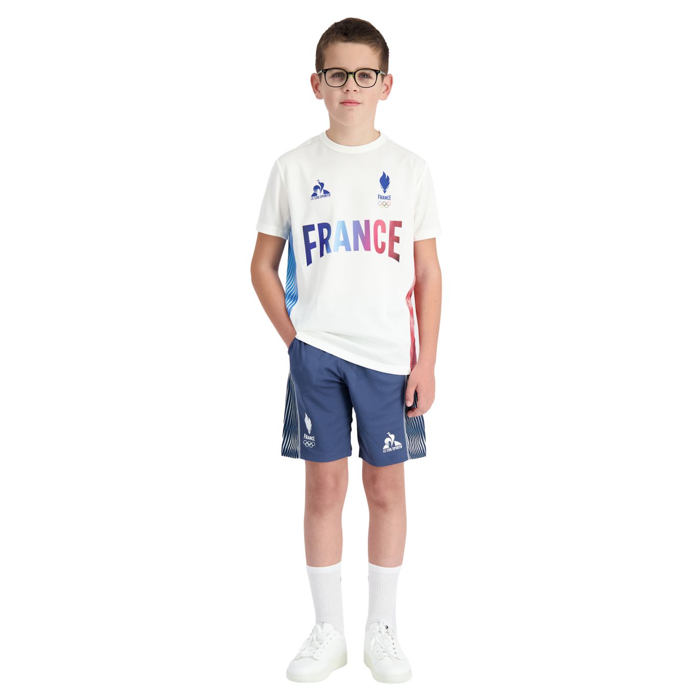 Emblèmes Olympiques : Affichez fièrement le coq sportif sur la poitrine droite et le logo officiel des JO 2024 sur la poitrine gauche. L'engagement envers l'excellence sportive est clairement défini, même pour les plus jeunes.
